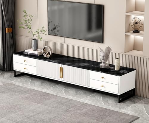 - Resistente y duradero: este elegante soporte de TV está bien construido con un tablero MDF de calidad con una base de marco abierto de metal resistente, lo que garantiza una construcción confiable y estable.