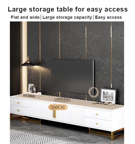 - Mueble de TV decorativo: la combinación de elegantes curvas, detalles dorados y patas metálicas le dan a este mueble de TV un aspecto lujoso y sofisticado que realzará la decoración de cualquier sala de estar o espacio de entretenimiento.